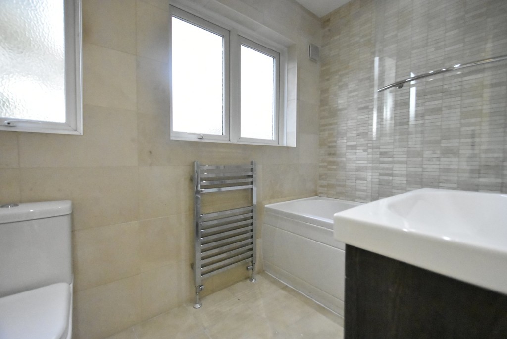On the first floor are two double bedrooms with fitted wardrobes and a single bedroom. There is also a tiled family bathroom with full size bath.